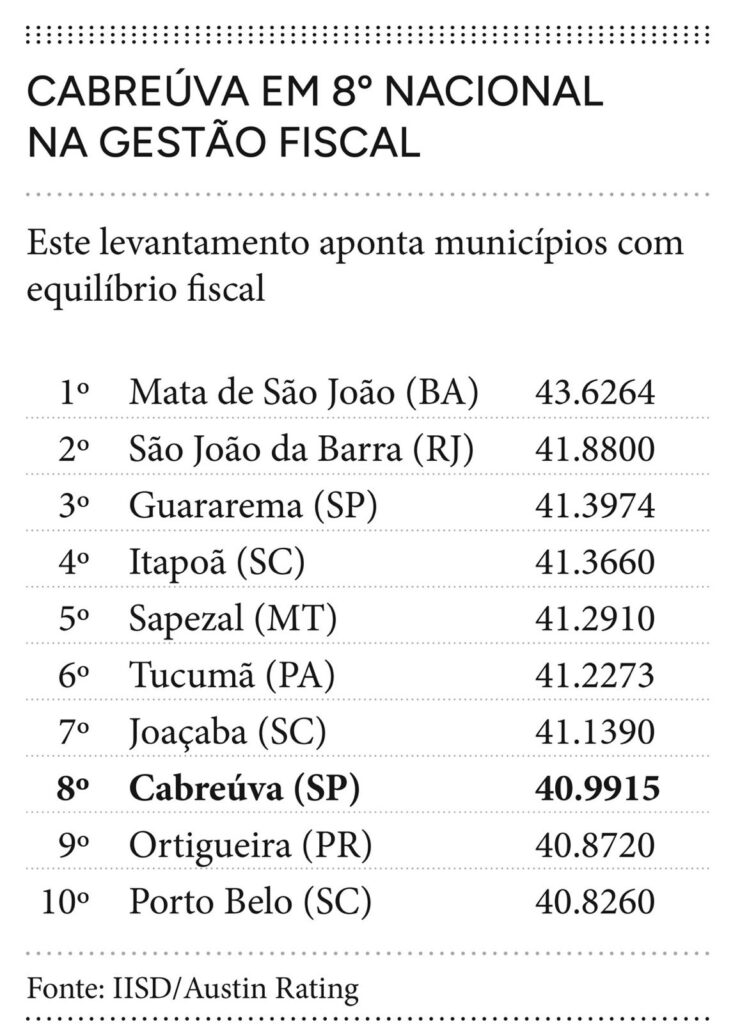 Já no critério fiscal, aparece na oitava posição entre as cidades avaliadas.